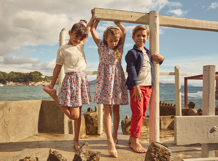 Fleurs et touches nautiques pour les filles, esprit sportif pour les garçons, unis par rayures et sweat marinière pour des looks coordonnés pleins de charme.