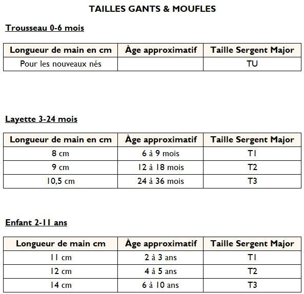 Chez Sergent Major, chaque enfant grandit à son rythme, et chaque taille raconte une étape de son histoire. Du 0 mois au 11 ans pour le prêt-à-porter et du 20 au 38 pour les chaussures, notre guide des taille est là pour les accompagner, pas à pas, dans leurs aventures.