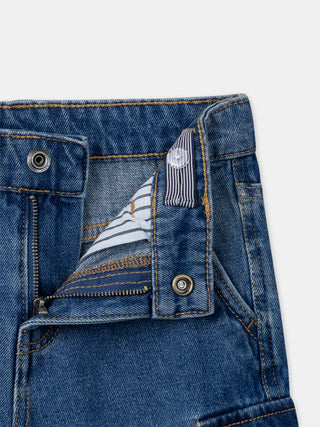 Ce bermuda est conçu pour les enfants aventuriers durant l’été. En jean style cargo, il propose une coupe pratique avec poches multiples. Les détails tissés complètent son univers baroudeur.