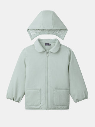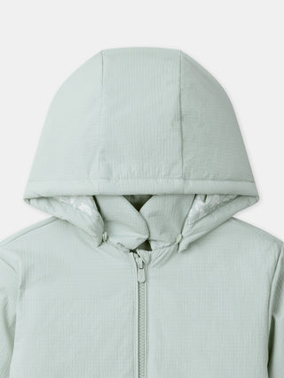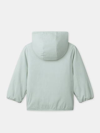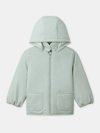 Conçu pour les enfants curieux qui profitent du plein air en mi-saison, il apporte chaleur légère. Sa forme en ripstop, sa capuche amovible et sa doublure en jersey assurent confort et résistance. Le motif fleuri intérieur et les boucles pour accrocher les gants ajoutent une note pratique et poétique.