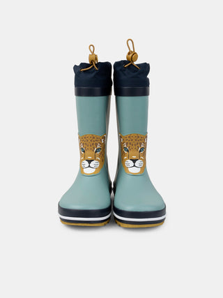Botte de pluie bleu avec patch tête de léopard Garçon