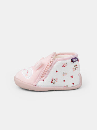 Chausson rose tête de renard et imprimé fleuri Bébé Fille