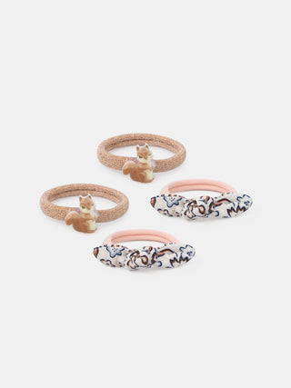 Lot 4 élastiques écureuils et nœuds imprimés fleuri :