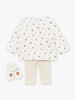 Ensemble gilet, pantalon et chaussettes écru et grège