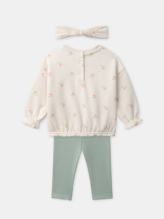 Ensemble sweat écru + legging vert + bandeau Bébé Fille