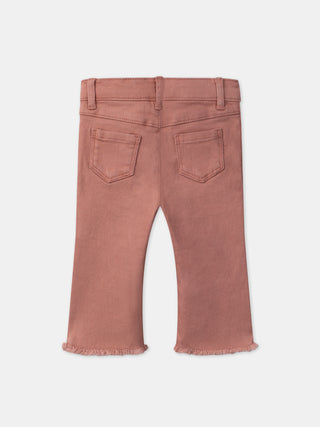 Ce pantalon évasé est idéal pour les petites filles à la mode, parfait pour les journées ensoleillées. Il est conçu avec une taille élastiquée et une ouverture par bouton à pression pour un confort optimal, tout en présentant des poches avant plaquées avec des fleurs brodées. Le bas effiloché ajoute une touche tendance et décontractée à ce pantalon pratique.