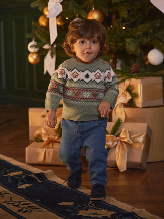 Pull de noël vert sauge Bébé Mixte